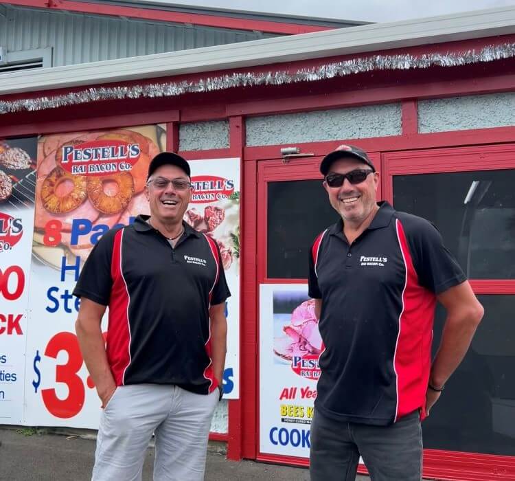Pestell’s Rai Bacon Company is a family-owned business based in Nelson, run by third-generation butchers Christopher and Stephen Pestell. After 20 years in retail butchery, they established the company in 2001 to offer premium-quality bacon at affordable prices. Their purpose-built factory in Stoke meets growing demand across New Zealand, supplying supermarkets, cafés, and restaurants with traditionally cured, manuka-smoked bacon. By staying true to time-honoured techniques and listening to customer needs, Pestell’s has introduced innovations like preservative-free bacon.